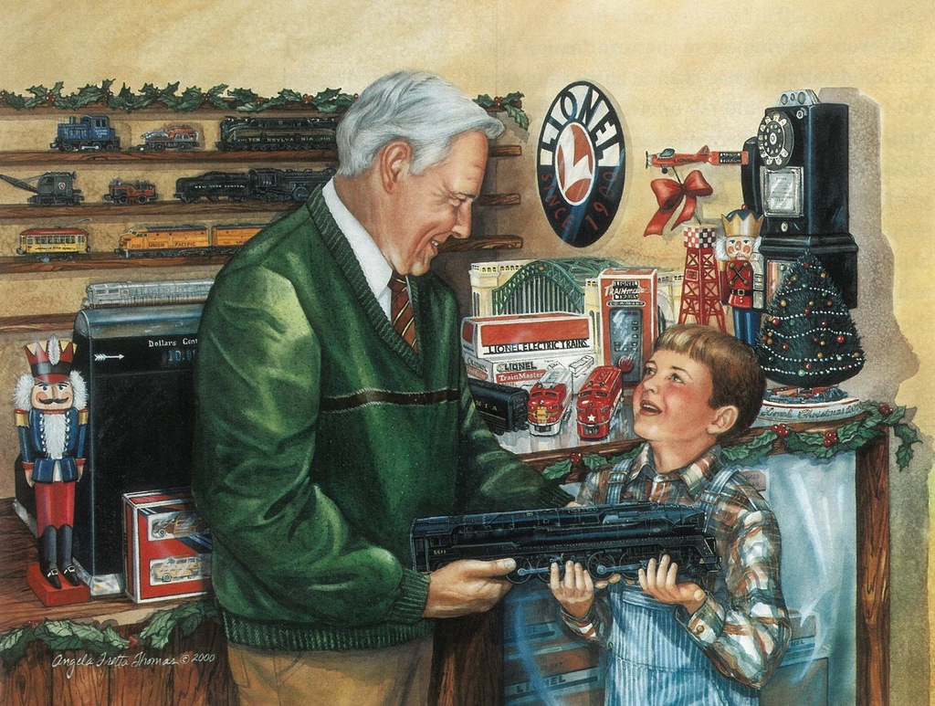 “The Legend Continues – Thanks Grandpa” Lionel Catalog cover art courtesy of the artist, Angela Trotta Thomas.