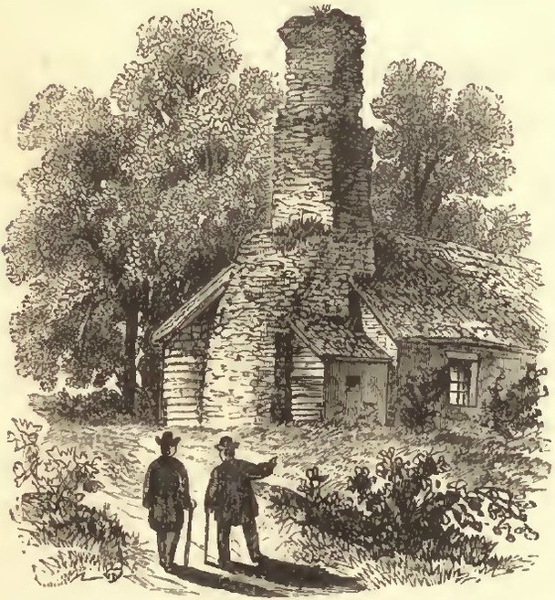Colonel Peter A. Porter made this sketch of the Old Stone Chimney and one of the 19th century dwellings to which it was attached.