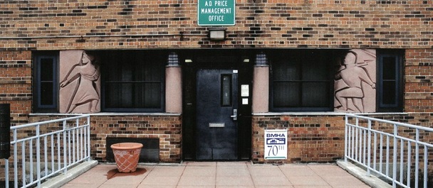 Willert Park Courts was a “New Deal” 1938 Works Project Administration (WPA) federal housing project funded by the U.S. Housing Authority. It was specifically intended for African-Americans living in the Ellicott District which was overcrowded because of residential segregation in the city. The Federal Arts Project (FAP) was assigned to provide sculpture for the project. They chose New York City sculptor Robert Cronbach to create the artwork. To prepare for the task, Cronbach traveled to Buffalo and met with a wide range of leaders in the black community. He found that they did not want sculpture that would accentuate their ethnicity but preferred everyday, domestic and pleasant scenes. Cronbach recalled, “I planned the sculpture with an architect, found a suitable vacant city-owned building and arranged for its use as a studio, worked out the casting and installation procedures for the tamped concrete sculpture who were working on the housing project, and brought fellow Project sculptor, Harold Ambellan, from New York to join me in carrying out the work.”