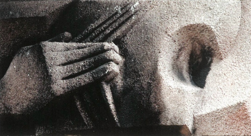 Emblems of everyday life and work included the following pairs of 1-foot-3-inch by 2-foot-5-inch cast concrete sculptures installed at entryways: