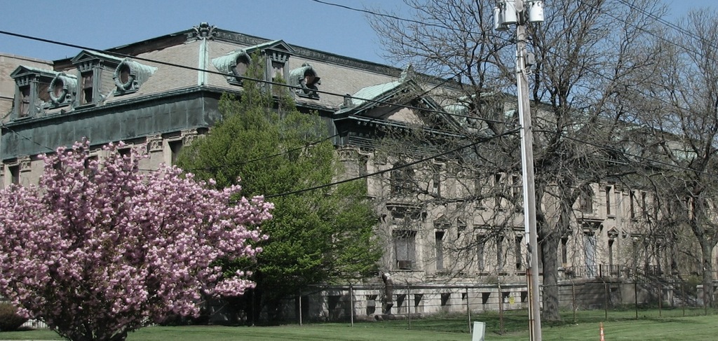 In 1922, Lackawanna Steel was purchased by Bethlehem Steel. Under the Bethlehem name, the Lackawanna complex continued to be central to the American steel industry. During the Second World War, it was the largest steel mill in the world. By the early 1980s, however, the plant had closed and the 21st Century finds the future of the old steel complex and its once-elaborate office building in doubt. While the office building has been declared eligible for a National Register of Historic Places listing, the years of neglect have taken their toll. Lackawanna Mayor Norman Polanski, Jr. has labeled the building “beyond repair” and the City of Lackawanna is seeking funding through Restore NY to have the building demolished. Alternative solutions have been put forth, predictably some more practical than others. One suggests a re-use of the entire complex along the lines of Arthur P. Ziegler Jr.’s