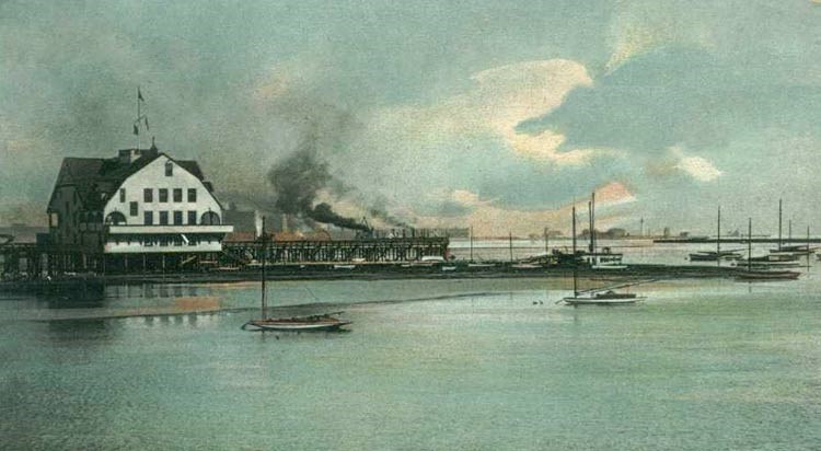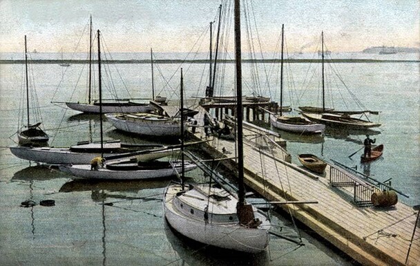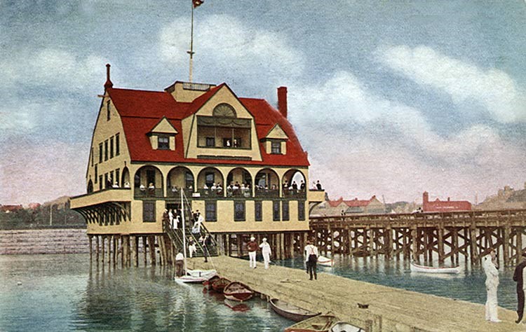 The Buffalo Yacht Club and its pier, viewed from the water, c. 1895. Image source: private collection.