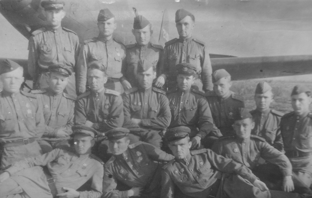 P-39 44-2911 was being piloted by 22-year-old Lt. Ivan Ivanovich Baranovsky (second row, third from right) when it crash landed in Lake Mart-Yavr in the Russian Arctic Circle. Note a different P-39 in the background of this photo.
