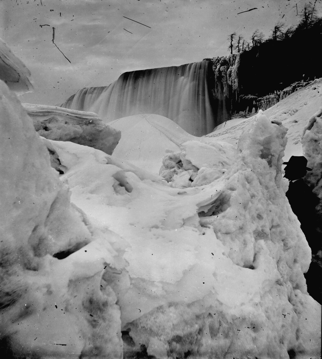 We conclude this winter issue with some images of the frozen falls landscape from over a century ago, courtesy of our image collection.
