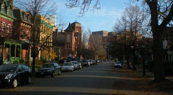 Neighborhood revitalization efforts, such as this shot of Prospect Street, involve detailed research into the history of the affected properties.