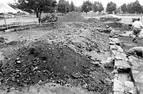 1996 excavation of the Marine Drive Apartments parking lot reveals the foundations of Wheeler's Hotel, above.