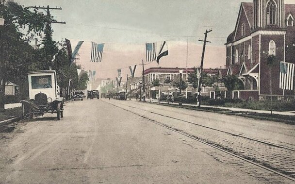St. Paul’s Roman Catholic Church was founded in 1897 at the corner of Delaware and Victoria avenues, on three acres donated by the Mang and Keller families. The rectory was added in 1910. The streetcar line to Tonawanda was put through the village in 1894 when Delaware was paved with brick. Within a decade it became a speedway for newfangled automobiles.