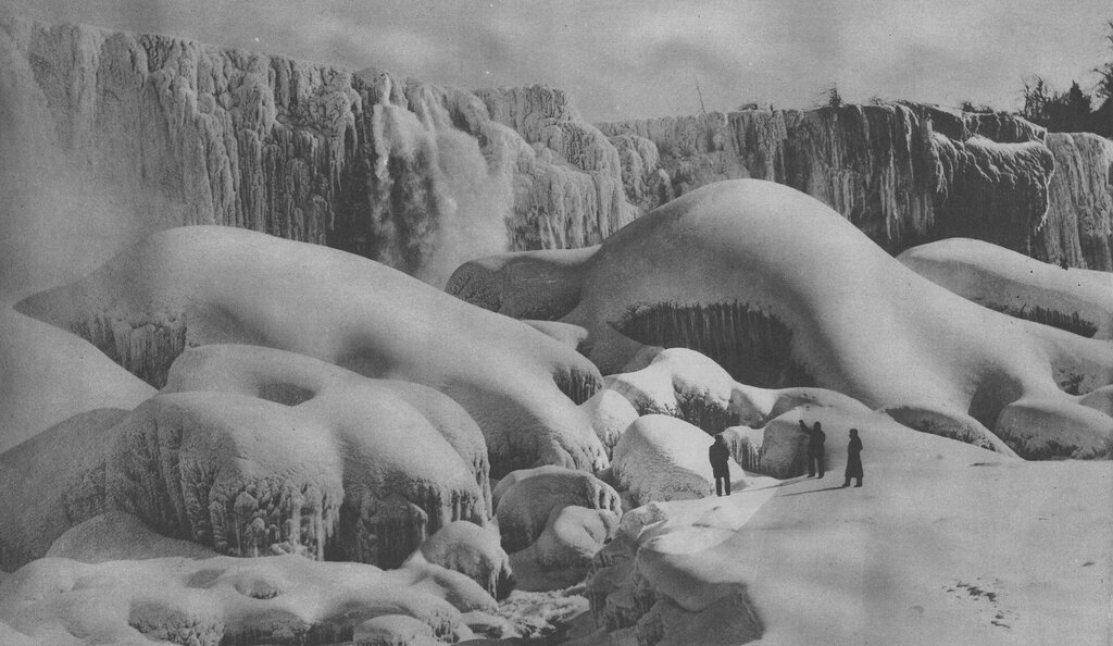 Niagara Falls continues to provide breathtaking frozen sculptures during the cold winter months, though visitors are no longer allowed to get the kind of close-up look experienced by the folks in this ca. 1922 photo.