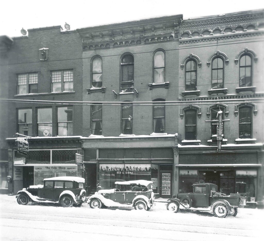Foote Avenue in Jamestown provided this similar view of snow-covered cars and frosty storefronts, ca. 1931.