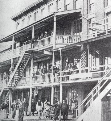 ON THE WHARF: People gathered on the Central Wharf's tiers of balconies overlooking the Buffalo Harbor, circa 1870.